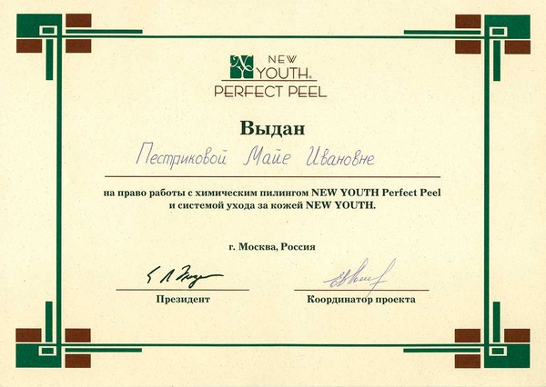 2015 - Повышение квалификации на базе Учебного центра «РЕДНОР». Специальность: «Косметология»